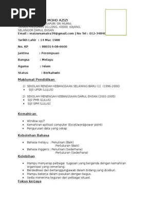 Contoh Resume Penolong Pegawai Tadbir Riwayat Hidup